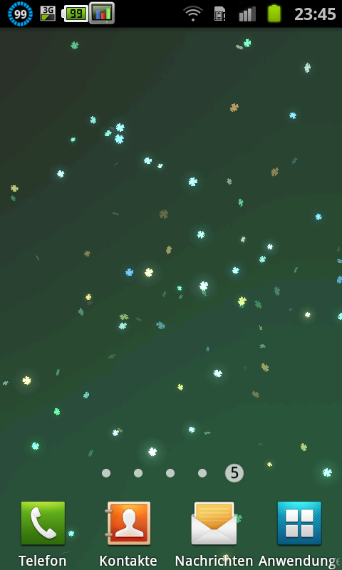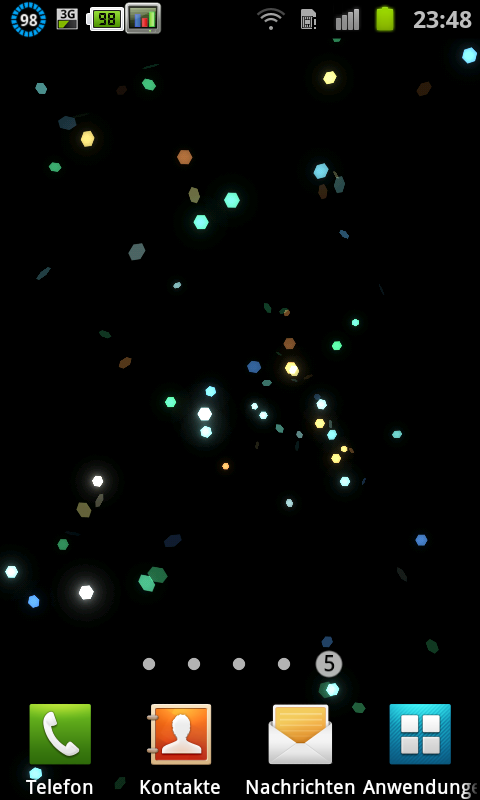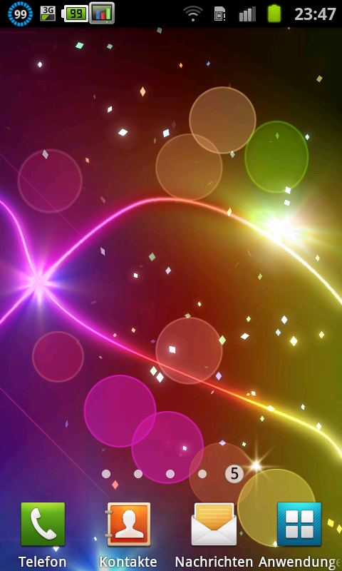 Hier stelle ich noch ein Live Wallpaper vor, was mir sehr gut gefällt. Android Sparkle Live Wallpaper von tyf_android_dev. Es ist letzendlich ähnlich dem Sparkle Live Wallpaper. Insgesamt sieht es aber noch ein wenig spannender aus. Man kann Hintergründe wählen die einen Farbverlauf anbieten. Die Formen der Sparkles sind auch auswählbar. Man kann die Sparkles Mengen und das Verhalten einstellen. Gut gefällt mir auch bei diesem Live Wallpaper das es wirklich Alltagstauglich ist. Das heißt ich kann auf meinen Homescreen auch noch die Widgets und Starticons erkennen. Das Wallpaper wirkt nicht überladen und läßt die Verknüfungen auf dem Homescreen nicht in einem Farbbrei untergehen. Ok, die Frage ist braucht man überhaupt Live Wallpaper? Ich bin mir da auch nicht sicher, finde es zur Abwechslung aber immer wieder mal schön.
