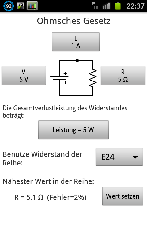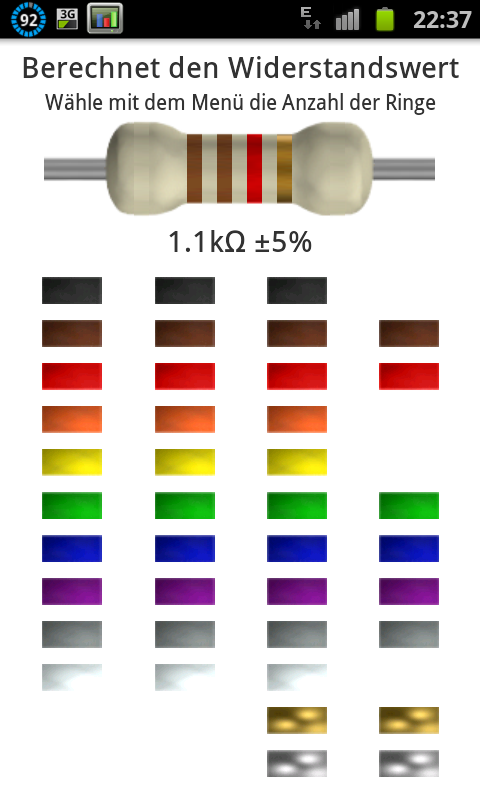 Android App: Das Ohmsche Gesetz und Widerstandsfarbcodes auf dem Android mit ElectroDroid