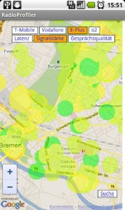 Das Project Radio Profiler von Eike Carls hat es sich zur Aufgabe gemacht, die Signalqualität der verschiedenen Mobilfunknetze zu messen und auf einer entsprechenden Map zu dokumentieren. Es ist ein Community Projekt was natürlich mit der Anzahl der Nutzer an Qulität gewinnt. Laut Google Play ist die App aktuell (13.4.12) nur zwischen 1.000 und 5.000 mal installiert. So ist es zur Zeit noch so, dass es für einige Gebiete speziell in Ballungsräumen und Städten schon einen guten Datenstamm gibt. Leider ist es auf dem Land, noch nicht mit sovielen Daten gefüttert und die Karten daher recht ungenau. Das Projekt kann einem aber eine kleine Hilfestellung geben, bei der Beurteilung der Mobilfunk Anbieter.