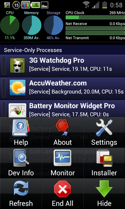 Die SystemPanel App von NextApp, Inc. für 2,21 € dient als System Informationswerkzeug, als Taskmanager und als App Manager. Im ersten Bildschirm sind die ganzen Apps aufgelistet. Die aktiven aber auch die inaktiven. Es gibt Angaben zum belegten Speicher und zur verwendeten CPU Zeit. Der Systemmonitor zeigt mit Diagrammen an, wieviel Aktivität die CPU hat, wieviel Speicherplatz belegt ist und auch den Netzwerktraffic. Im History Modus werden die Daten eines vergangenen Zeitabschnittes angezeigt. So lässt sich feststellen welche App zum Beispiel die letzten 2 Stunden oder auch die letzte Woche am aktivsten war, auch mit einer Anzeige der CPU Zeit. Im Plot Modus der History gibt es übersichtliche Diagramme zu den Daten vom Akkustand, der Bildschirm an/aus also der Benutzung des Gerätes und der CPU Aktivität. Im Modus Installer gibt es eine Übersicht der installierten Apps. Hier können einzelne Apps abgesichert werden. Es ist auch möglich verschiedene Versionen einer App abzulegen. Zum Testen von Apps ist dieser Modus auch sehr hilfreich. Insgesamt gefällt mir die App sehr gut, vor allem der History Modus ist sehr nützlich. Hier kann auch sehr gut beobachtet werden, welche Apps am kräftigsten am Akku ziehen. So ist es möglich gezielte Maßnahmen zu treffen um die Akkulaufzeit zu verlängern.