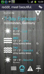Wetter Apps und Widgets gibt es für Android ja wie Sand am Meer. Wie genau sie das Wetter Voraussagen läßt sich am Ende schwer nachvollziehen. Mal stimmt die Prognose von dem einen mal die von der anderen App. Die 1Weather App von OneLouder ist in jedem Fall in einem Punkt anders als die Konkurenz: Im Design.