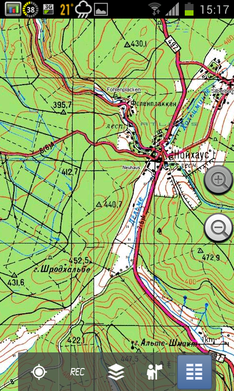 Die Landkarten- und Offroad-Navigations App von ATLOGIS Geoinformatics oHG ist vom Aufbau her den bekannten App Locus und Maverick ähnlich. Auch sie kann als Begleiter beim Wandern sehr nützlich sein. Die wihctigsten Funktionen wie Kartenansicht und auch ein Tripcomputer sind gut implementiert. GPS-Tracking und Wegpunkt können leicht gespeichert werden. Als besonderes Gimmick bietet die App, so wie der Name ja schon verrät, Zugriff auf alte sowjetische Militärkarten. Da es sich um pixelbasierte Karten handelt, sind sogar die Beschriftungen in kyrillisch ausgeführt. Es gibt eine kostenlose Version mit einem deutlich eingeschränkten Funktionsumfang.