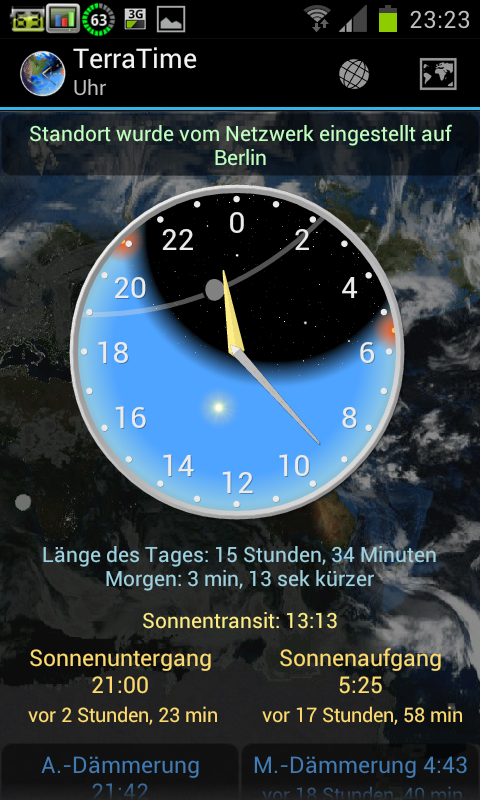 Die App TerraTime von Udell Enterprises, Inc ist eine Android Smartphone App die sich mit dem Thema Tag und Nacht auseinandersetzt. Sie möchte den Tag/Nachtverlauf auf einer virtuellen Erdansicht darstellen. Enthalten ist bei der App außerdem ein Live Wallpaper und verschiedene Widgets. Die App kann für jeden Android Outdoor Nutzer interessant sein. Es gibt in TerraTime drei verschiedene Bereiche. Android App: TerraTime, Tag und Nacht im Blick weiterlesen