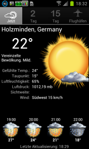 Ein weitere App von GO Launcher EX ist GO Weather EX. Die Wetter App besteht aus zwei verschieden großenb Widgets und einem Hauptbildschirm. Sie ist von den Machern des GO Launcher EX und nur mit diesem läßt sie sich auch verwenden. Sie ist also kein Standalone-Programm. Es gibt aber vom GO Team noch eine andere Wetter App. Diese nennt sich GO Weather über die hier in diesem Blog auch schon berichtet hatte.