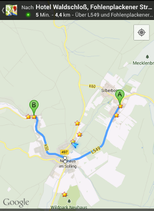 Beim Autofahren auf normalen Straßen funktionierte ja Google Maps schon eine Weile recht gut, vorausgesetzt man hat eine Mobilfunk-Verbindung ins Internet. Nun ist es aber auch möglich, in den Navigationseinstellungen festzulegen, dass man zu Fuß unterwegs ist. Bei meinem Test in der Nähe von Neuhaus im Solling war das Ergebnis erstunlich gut und der Weg den Google Maps als Fußweg vorschlägt, sinnvoll und kürzer als die Strecke für das Auto. Nicht schlecht. Die Google App Google Maps bezieht hier zur Navigations-Strecken-Berechnung auch Waldwege und einfache Wanderwege mit ein. Woher allerdings diese Daten stammen und wie genau und umfangreich sie sind, muss ich erst noch testen. Ich bin zumidestenes sehr überrascht über die Routingfunktion hier im Solling.