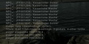 Die Konsole wird geöffnet mit der Taste „^“ nun geht das Konsolen Fenster auf. Um nun den Code für einen Gegenstand oder Charakter herauszubekommen der in seinem Namen Drachen hat tippt man „/help drache“ ein. Hiermit werden alle Items herausgesucht die in irgendeiner Kombination Drache in ihrer Bezeichnung haben. Das geht natürlich auch mit allen anderen Wörtern. Also „/help dolch“ zeigt einem Dinge bei denen im Namen Dolch vorkommt.