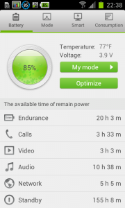 Die Smartphones sind ja eher kleine Handtaschen PC und weniger Handy. Will man die Nutzungsdauer dennoch ohne Hilfsmittel erhöhen kann man sich damit behelfen, nicht benötigte Dinge abzuschalten. Die größten Stromfresser beim Android Smartphone sind ja Bluetooth, GPS und Mobilfunk. Also wenn man bestimmte Dinge nicht braucht, abschalten! Ich habe mir zum Beispiel angewöhnt im Büro, wo ich mein Handy nicht brauche, in den Flugmodus zu wechseln. Das geht bei den meisten Androiden recht schnell.